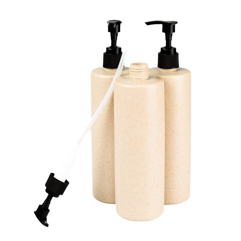 Dette er Wheat Straw Plastic 200ml 250ml 300ml 400ml 500ml Hair Conditioner Shampoo Body Wash Shower Gel Lotion Pump Bottle, som ofte bruges i shampoo, shower gel, håndsprit og bodylotion. De er almindelige i dagligdagen og er en uundværlig del.